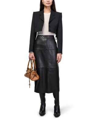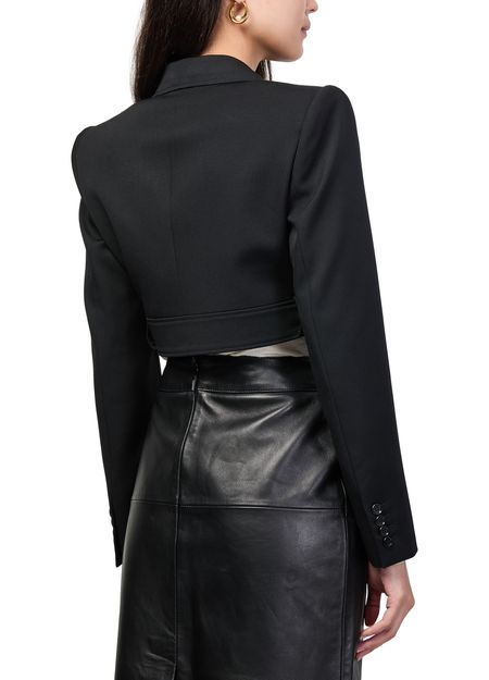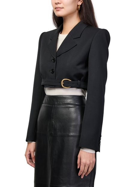 Reveal Chloe's cropped blazer, a short, belted blazer with a refined collar and long sleeves. The three-button closure adds a tailored touch, while its sleek silhouette ensures effortless versatility. Perfect for elevating both casual and formal looks with modern sophistication.
