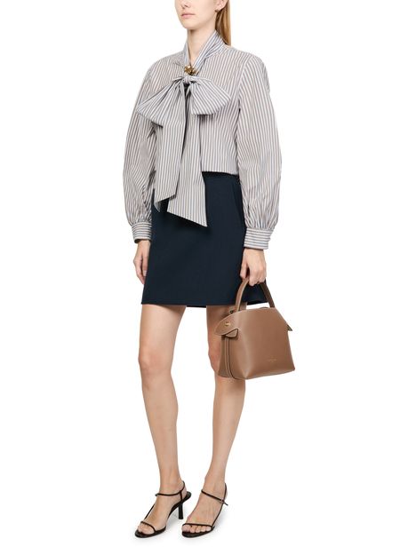 Reimagine Max Mara's Disco striped shirt with its striking striped print and puff long sleeves, creating a statement piece for any wardrobe. The loose fit offers effortless comfort, while the bow fastening adds a touch of elegance. Ideal for pairing with tailored trousers or skirts for a polished look.