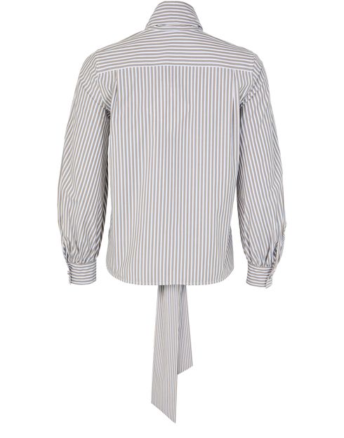 • 説明 : Loose fit, striped print, lavaliere/tie-neck, puff, long-sleeved, bow fastening.