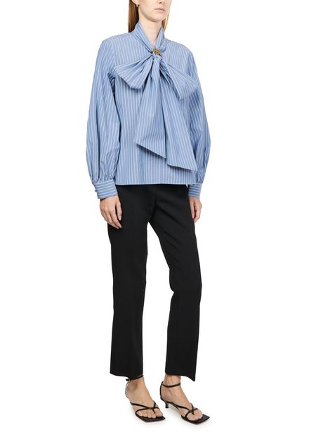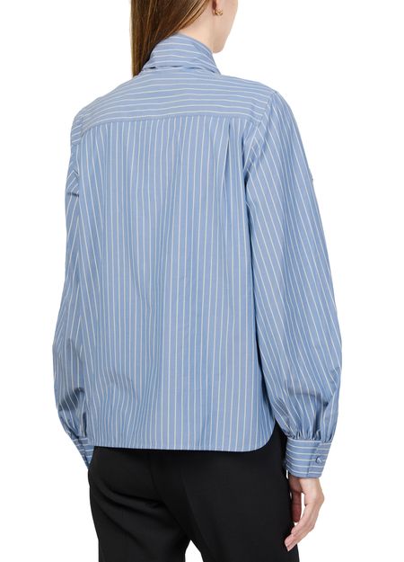 Reimagine Max Mara's Disco striped shirt with its striking striped print and puff long sleeves, creating a statement piece for any wardrobe. The loose fit offers effortless comfort, while the bow fastening adds a touch of elegance. Ideal for pairing with tailored trousers or skirts for a polished look.