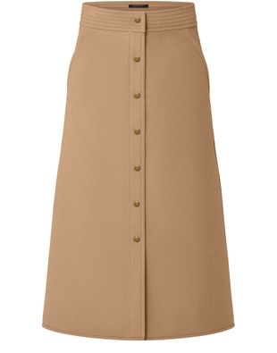 ミニマルなシルエットに仕上げた、ミディアム丈のスカート。ハイウエストのラインを彩るトップステッチが、さりげない質感をプラス。ウール & シルクの混紡素材をメゾンが誇るダブルフェイス加工の技法で手触りの良い快適な着心地に仕上げ、内側にはアイコニックなモノグラム・パターンをあしらいました。今シーズンならではの温かみのある色合いを引き立てるメタルボタンも魅力。日常使いにぴったりの定番アイテムをアップデートした1着です。ご不明な点がございましたら、クライアントサービスまでお気軽にお問合せください。専任のクライアントアドバイザーが、素材やサイズなどの製品詳細、モデル着用イメージや関連アイテムのご案内など、お客様のご要望に合わせたスタイリング・アドバイスをご提供いたします。また、サイズ違いなどによる返品・交換のご相談も承ります。詳細は<a href='https://jp.louisvuitton.com/jpn-jp/legal-privacy'><b>こちら。</b></a>