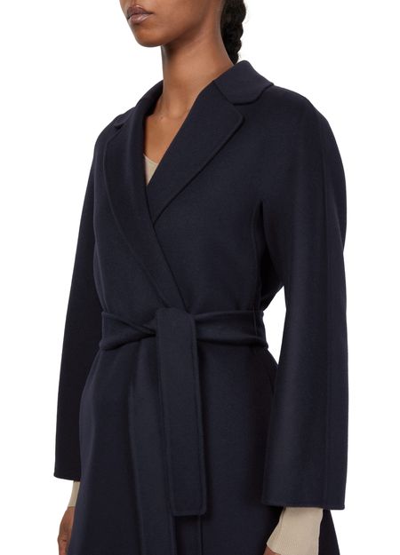 Introducing the S Max Mara Esturia long coat, a masterpiece of modern elegance. This wraparound design features a regular fit, long sleeves, and a chic collar, all complemented by a sleek bow fastening. Perfect for any occasion, this belted coat redefines sophistication with its timeless versatility.