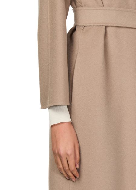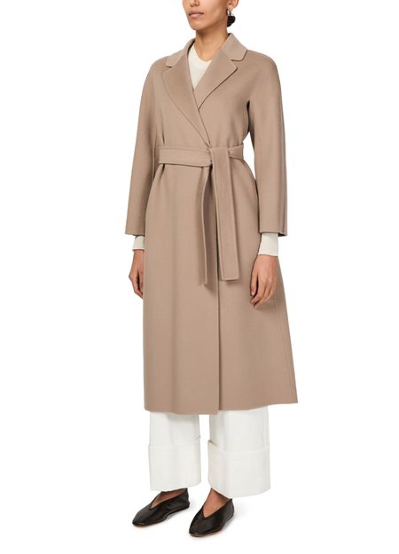 Introducing the S Max Mara Esturia long coat, a masterpiece of modern elegance. This wraparound design features a regular fit, long sleeves, and a chic collar, all complemented by a sleek bow fastening. Perfect for any occasion, this belted coat redefines sophistication with its timeless versatility.