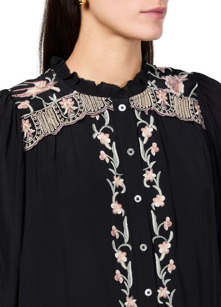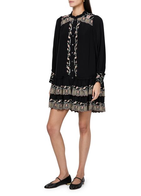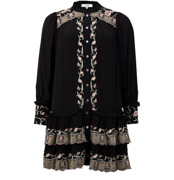 • 説明 : フロントボタン留め, 刺繍ディテール, 目に見えるステッチ, ミニドレス, ロングスリーブ.