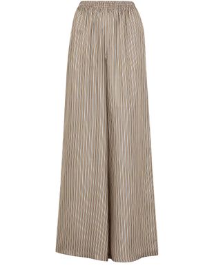 Reveal Max Mara's Ladino wide leg pants. These ankle-length trousers feature a chic striped print and a comfortable elasticated waist, making them a versatile choice for any wardrobe. Perfectly blending style and comfort, they effortlessly transition from casual to more formal settings.
