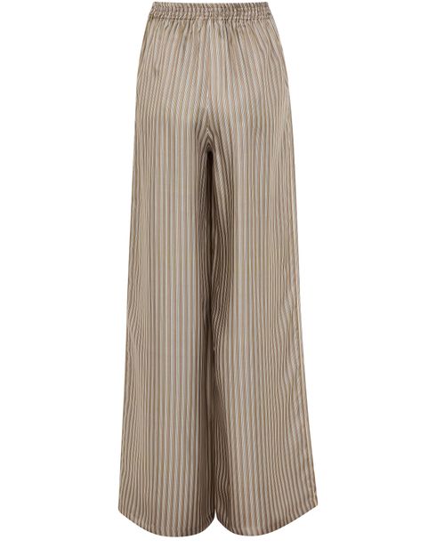 Reveal Max Mara's Ladino wide leg pants. These ankle-length trousers feature a chic striped print and a comfortable elasticated waist, making them a versatile choice for any wardrobe. Perfectly blending style and comfort, they effortlessly transition from casual to more formal settings.