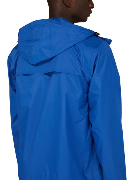 - 説明 : ハイネックジャケット, ストレートフィット, フード, ロングスリーブ, 袖口リブ, サイドにパイピングポケット, フロントにロゴ, ファスナー開閉, ウォータープルーフ, パッカブル.