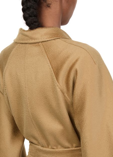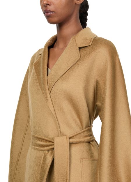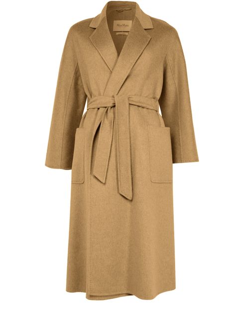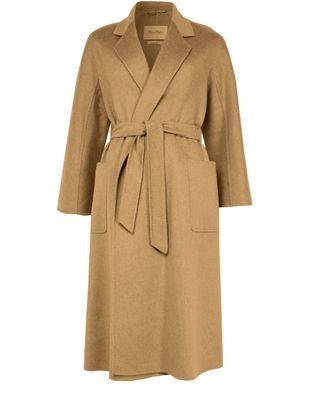 Indulge Max Mara's Ludmilla long coat, a masterpiece of elegance with its regular fit and knee-length design. The belted style, adorned with a collar and long sleeves, promises warmth and sophistication. Complemented by practical patch pockets, it's perfect for both casual and formal settings.