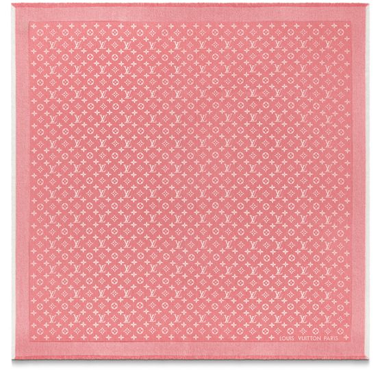 日常使いにぴったりの、2023春夏の新作「ショール・120 LV トゥデイ」。パステルカラーのレッドのコットン & シルク混紡素材に、アイコニックなモノグラム・パターンをジャカード織りの技法であしらい、ボトム部分は「Louis Vuitton Paris」シグネチャーで彩りました。フリンジを施してカジュアルに仕上げたアイテムは、ドレッシーなスタイルとも相性抜群です。