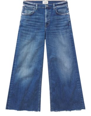 Discover Citizens's Lyra wide leg jeans, crafted from luxurious denim, featuring a high-waisted fit for a flattering silhouette. With ankle length and wide cut, these jeans offer both style and comfort. The buttoned zipper closure, paired with fringe details and dual pockets, adds a modern twist.