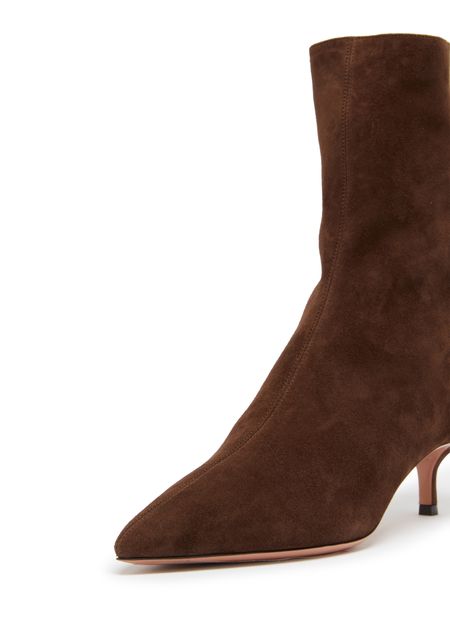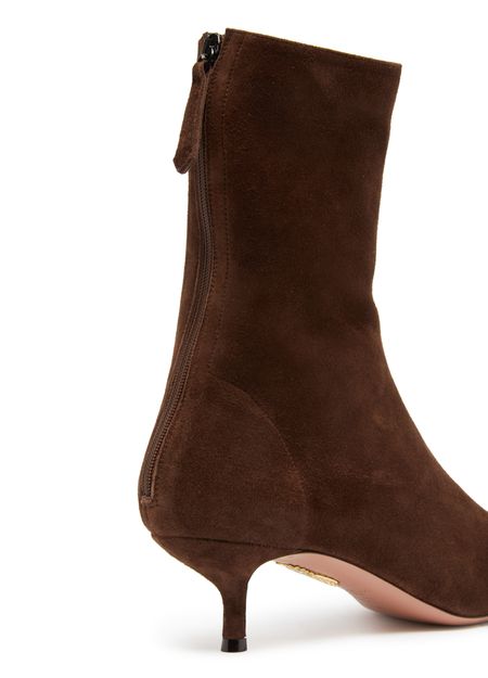Step into sophistication with Aquazzura's Montmartre bootie. This stylish boot features a pointed toe and a convenient back zipper for effortless wear. The closed design offers elegance, while the low heel ensures comfort for all-day adventures. Perfect for making a statement, these boots elevate any outfit with grace.