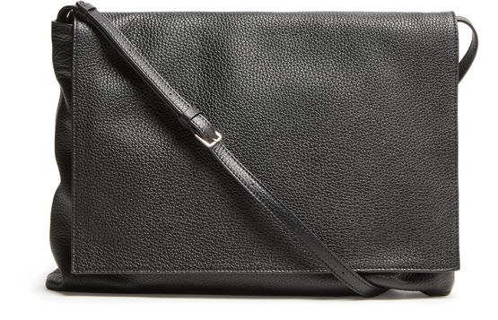 Discover the Row Nan Messenger Bag in grained leather, blending style with function. Featuring a sleek thin strap, adjustable for comfort, and a detachable interior purse, this bag masterfully combines modern elegance with practicality. The visible topstitching adds a refined touch to its exquisite design.