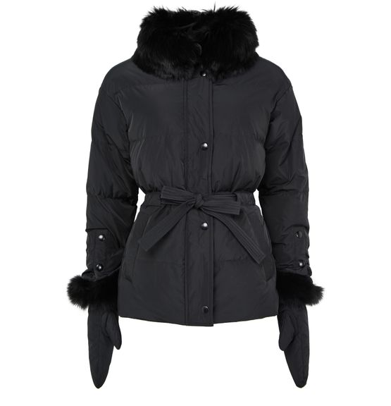 YVES SALOMONDown jacket with fox fur collar and mittens