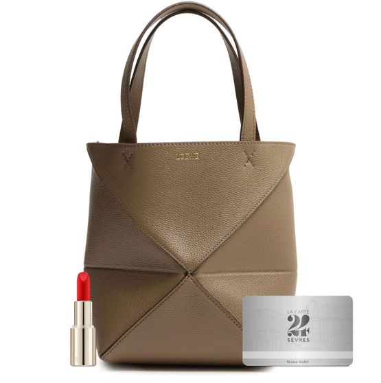 Unveil Loewe's Mini Puzzle Fold tote in soft grained leather, where elegance meets functionality. This tote features double handles and a spacious interior with a pocket for organization. Notable topstitching and a front logo add a sophisticated touch, perfect for any modern ensemble.