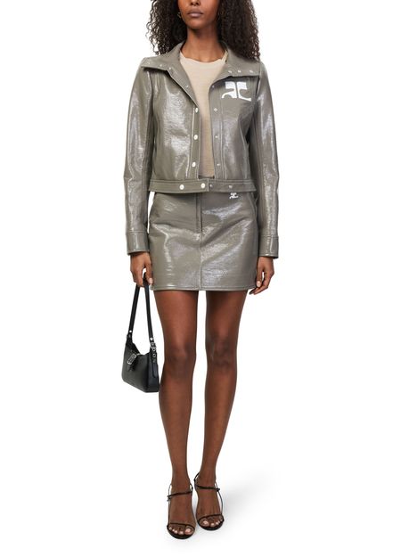 Reveal Courreges's Reedition jacket, crafted from vinyl for a striking, modern silhouette. The cropped fit and button fastening offer a sleek edge, while topstitched edges and a front logo add signature detail. Perfect for elevating both casual and refined looks with effortless versatility.