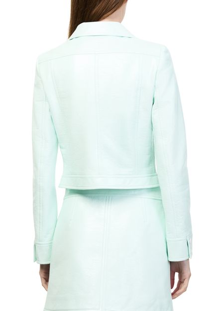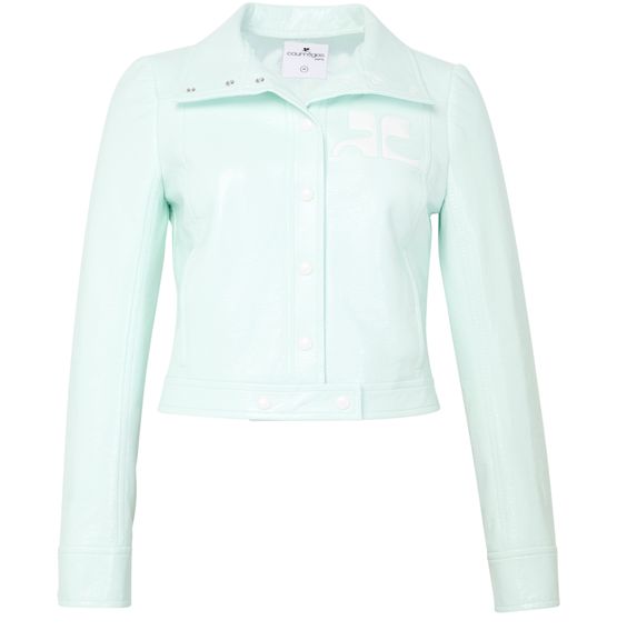 Reveal Courreges's Reedition jacket, crafted from vinyl for a striking, modern silhouette. The cropped fit and button fastening offer a sleek edge, while topstitched edges and a front logo add signature detail. Perfect for elevating both casual and refined looks with effortless versatility.