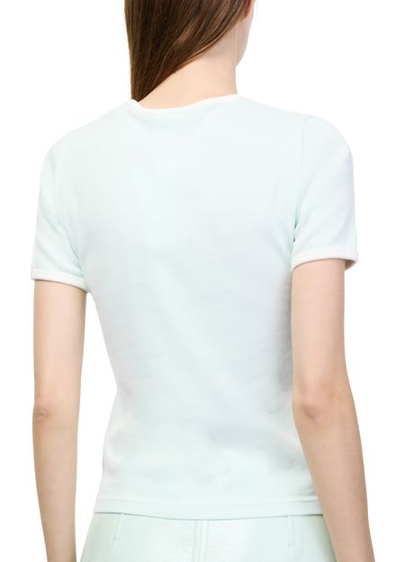 Reveal Courreges's Signature Contrast t-shirt, featuring a crew neck and short sleeves for a refined silhouette. The smooth fabric and bold contrast details make this top a standout piece, perfect for pairing with tailored pants or relaxed denim for a modern, versatile look.
