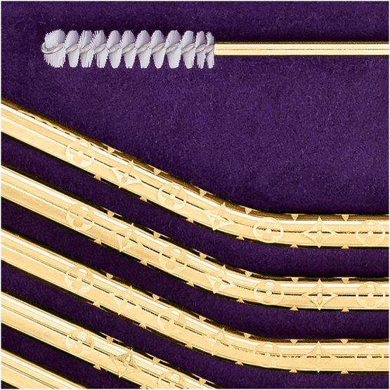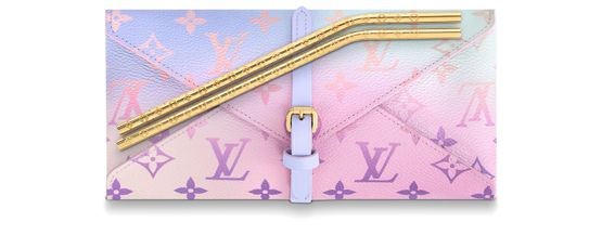 鮮やかな色のストローとポーチをセットにした、外出先でも手軽にドリンクをお楽しみいただける「エテュイ・6 パイユ」。ストローを保護するポーチには、2022夏コレクションに共通するパステルカラーのグラデーションのモノグラム・パターンを散りばめました。ポーチの中にはモノグラム・パターンが刻印されたストローが6本と、モノグラム・フラワー モチーフをあしらった同系色のクリーニングツールが入っています。