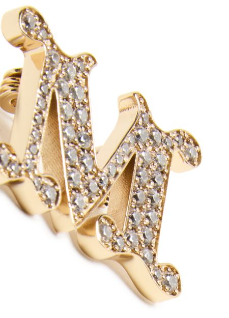 • 説明 : Gold finish, letter-shaped, set with round diamonds, logo details.