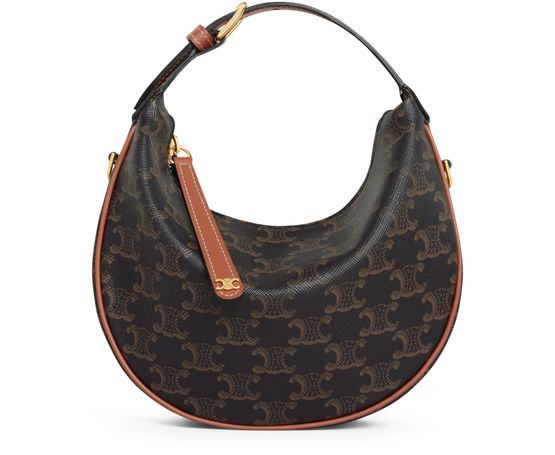 Indulge in Celine's teen Celine Lulu in Triomphe canvas and calfskin. This elegant bag features a gold finish and offers versatile carrying options: hand, shoulder, or cross-body. It boasts a zipped closure, a spacious main compartment, and an adjustable, removable strap for customized convenience.