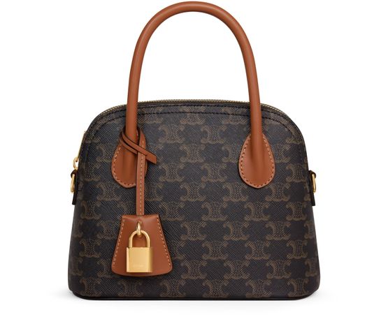 Reveal Celine's teen Honorine bag in Triomphe canvas and calfskin, adorned with gold finishing. Perfectly versatile with options for hand, shoulder, or cross-body carry, it features a zipped closure, a main compartment, flat pocket, removable and adjustable strap, and elegant leather handles.