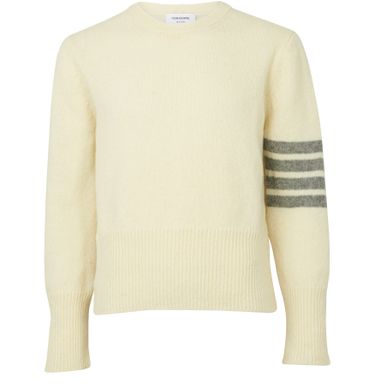톰 브라운(Thom Browne)은 4-바(4-Bar) 니트웨어의 넉넉한 아랫단에 하이 컷팅을 사용했습니다. 섬세한 니팅과 소매 위의 시크한 완장 패턴이 남성들의 마음을 사로잡을 거에요.