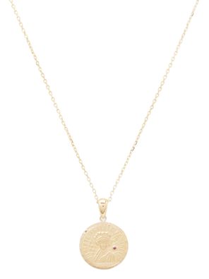아니사 케르미슈(Anissa Kermiche)는 피에스 루이 도르 펜던트로 여성들에게 고결함을 선사합니다. 17세기 동전 스타일로 제작된 18 캐럿 골드 메달에는 여성의 얼굴과 '자유, 평등, 여성'이라는 문구가 새겨져 있습니다. 디자이너의 시그니처인 작은 루비가 박혀있는 제품으로 하늘하늘한 포플린 셔츠에 매치하시면 좋습니다.