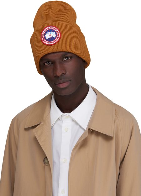 아크틱(Arctic) 비니와 함께 캐나다 구스(Canada Goose)가 남성 의류의 필수 아이템을 재해석합니다. 이 간결한 디자인을 지닌 액세서리는 브랜드를 대표하는 패치로 강조되었습니다.
