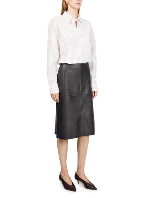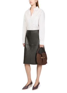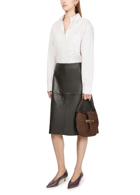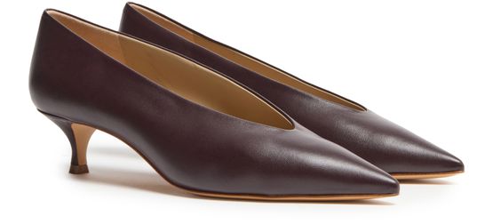 Unveil Le Monde Beryl's Babouche leather pumps, where elegance meets comfort. Crafted from smooth leather, these pumps feature a classic pointed toe and a closed design. The low heel and visible stitching enhance their refined silhouette. Ideal for those seeking a sleek yet understated style.