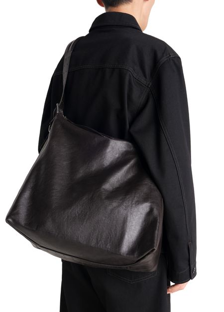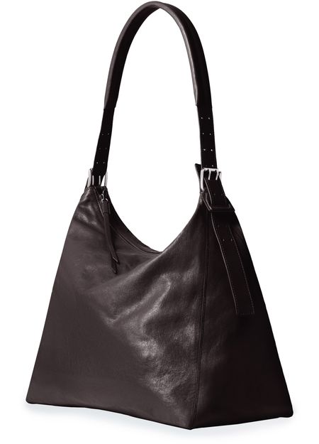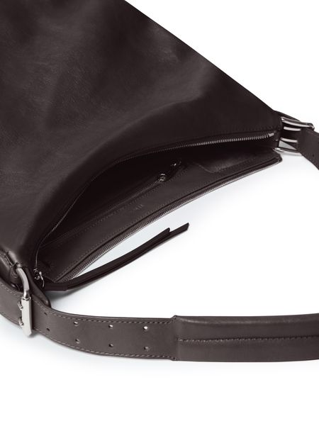 Unveil lemaire's belted hobo bag, a fusion of glossed leather and craftsmanship. This shoulder bag, featuring a single handle and an adjustable strap, offers gussets and a zippered closure for secure elegance. Inside, a zippered pocket enhances its functional style.