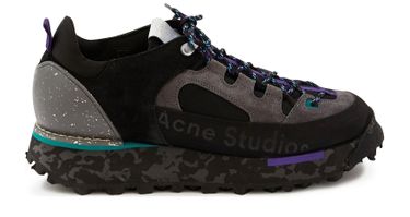 가느다란 끈이 달린 이 튼튼한 베르통(Berton) 로우탑 스니커즈는 톱니 모양 홈이 파이고 카모플라주 패턴이 프린트된 밑창과 가장자리의 아크네 스튜디오(Acne Studios) 로고를 특징으로 합니다.
