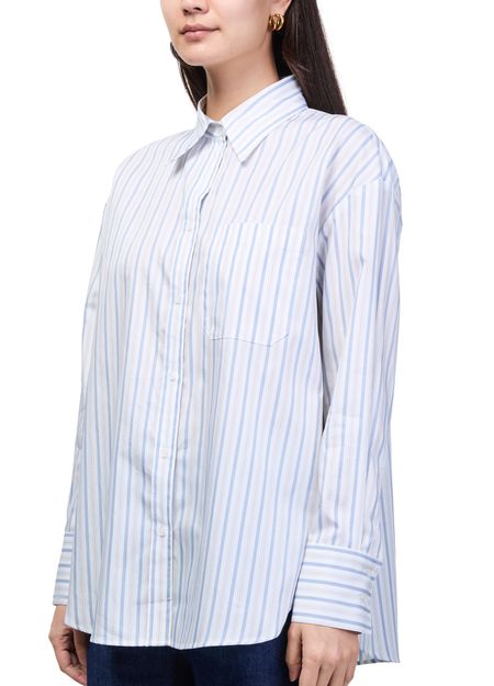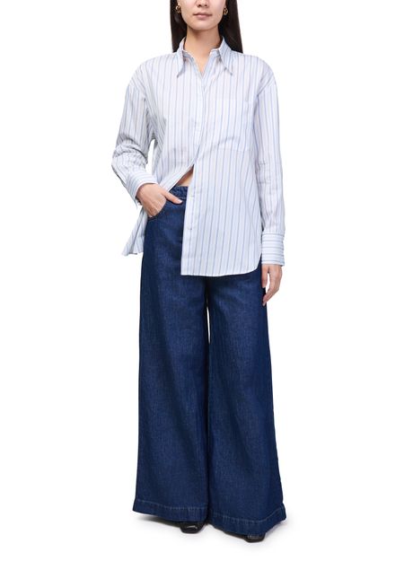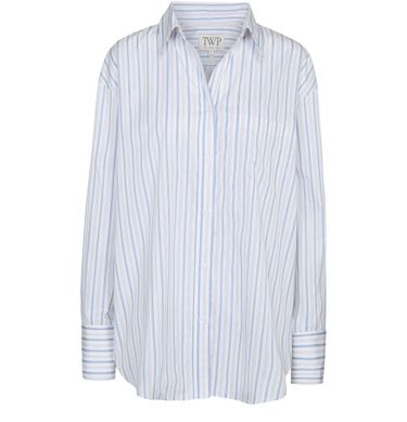 Reveal TWP's Big Joe striped shirt, a modern top featuring long, cuffed sleeves and a crisp front buttoned closure. The striped print and practical breast pocket add a refined touch, making this shirt a versatile choice for both casual and elevated looks.
