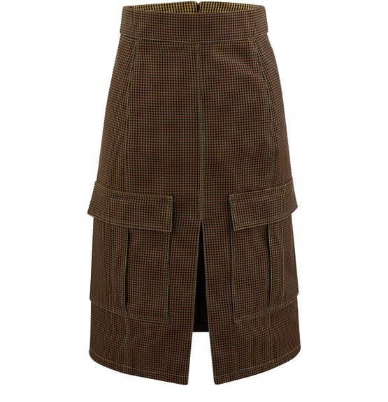 끌로에(Chloé)는 믹스드 울 스커트를 선보입니다. 이 아이템은 스트럭처드 컷과 앞쪽의 슬릿이 매력적입니다. 두 개의 커다란 버튼 포켓으로 더욱 현대적인 디자인을 자랑합니다.