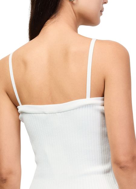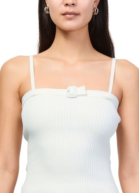 Reveal Courreges's buckle rib knit top, designed with a striking rectangular neckline and crafted from ribbed fabric for a refined texture. The sleek silhouette offers versatile styling, making it a standout piece for both casual and elevated looks. Pair effortlessly with tailored pants or your favorite denim.