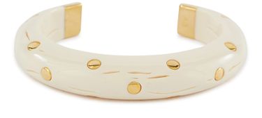 오렐리 비더만(Aurélie Bidermann)의 카프탄 문(Caftan Moon) 브레이슬릿입니다. 파리지엔 브랜드의 하이 팬시 스타일 오리지널 베이크라이트 뱅글입니다; 스터드 디테일 모델.