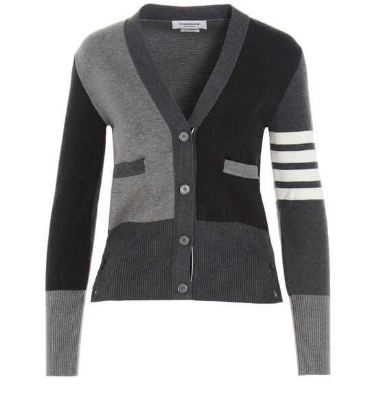 톰 브라운(Thom Browne)의 캐시미어 가디건은 의상의 각 부분이 서로 다른 짙은 색상으로 제작되었습니다. 안정감을 주는 부드러우면서도 포근한 감촉의 제품입니다. 소매를 장식하는 3개의 화이트 스트라이프, 옷자락의 블루-화이트-레드 테이프, 톤온톤 버튼은 세련된 마무리로 의상에 차별성과 개성을 부여합니다.