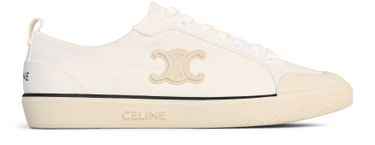 Introducing Celine's Alan sneakers with Triomphe in canvas. These sneakers stand out with a round toe shape and a distinctive Triomphe rubber patch on the side. Celine's name is elegantly printed at the back and on the tongue. Featuring cotton laces, a textile insole, and a rubber outsole, they offer both style and comfort.