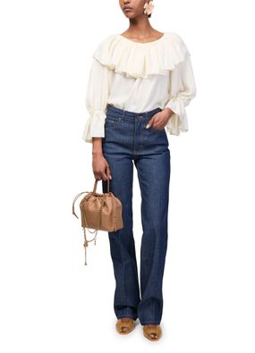 Reveal Chloe's Icons clutch bag, a statement piece crafted in supple leather with a gold-finish chain strap. The front logo in gold letters and visible topstitching highlight refined details, while the drawstring closure and interior pocket offer both style and practicality in a single compartment.