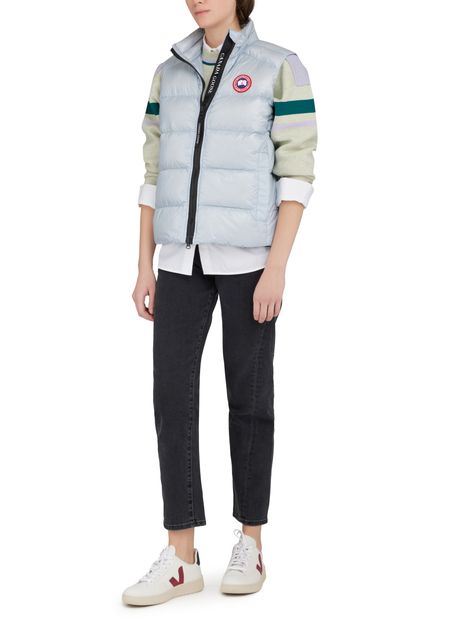 - 설명 : 재생 소재, 슬림 핏, 하이 칼라 탑, 슬리브리스, 지퍼 클로징, 사이드 포켓, 전면 로고, 체스트 로고, 5°C 에서 -5°C까지 온도를 견디도록 디자인된 아이템.