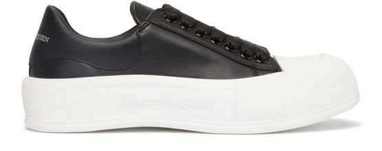 알렉산더 맥퀸(Alexander McQueen) 로고가 새겨진 덱(Deck) 스니커즈는 플랫폼 솔을 사용했으며, 모던한 곡선이 캐주얼 룩을 선사하는 레이스업 슈즈입니다.