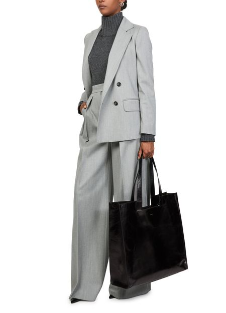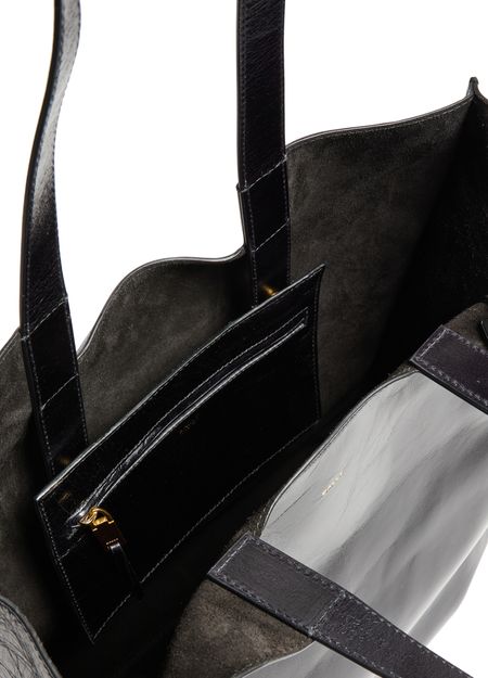 • 설명 : Shopper / tote bag, shoulder bag, double handles, leather handle, front logo, glossed leather, zippered interior pocket, visible topstitching.