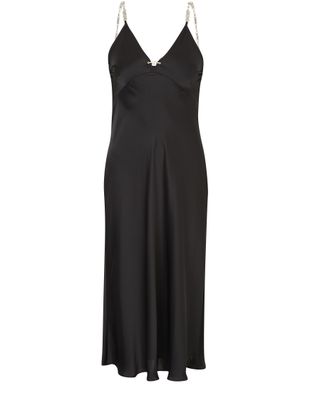 파코 라반(Paco Rabanne)이 디자인한 에이트(Eight) 드레스는 페미닌한 스타일을 연출합니다. 이 섬세한 아이템에는 니트 레이스를 메탈 소재로 완성한 듯한 작은 주얼리가 넥라인에 더해져 있습니다.