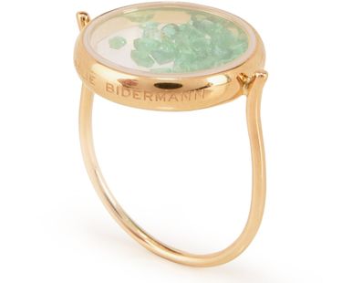 치버 에메랄드 (bague Chivor émeraude by Aurélie Bidermann) 링은 방돔 광장에 위치한 오렐리 비더만 아틀리에에서 10년 이상 수공예 제작하는 아이템 중 하나로 골드 제품이며 기술력 혁신을 통해 상이한 형태의 보석을 자유롭게 배치하여 프랑스 주얼리의 부활을 상징하는 작품입니다. 유리 아래 흔들리는에메랄드의 옥구슬 소리가 매우 청아합니다.