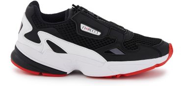 붉은 포인트로 역동성을 부여한 팔콘 집(Falzon Zip) 스니커즈가 과감하게 지퍼 잠금장치를 선택하여 아디다스(Adidas) 슈즈를 유니크하게 만들어 줍니다.
