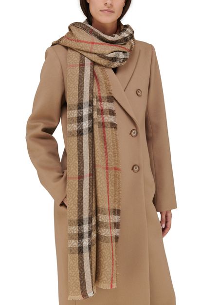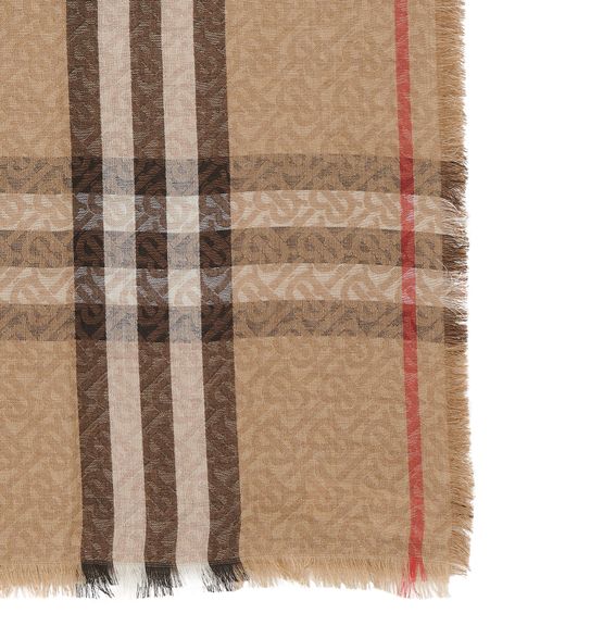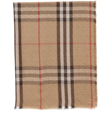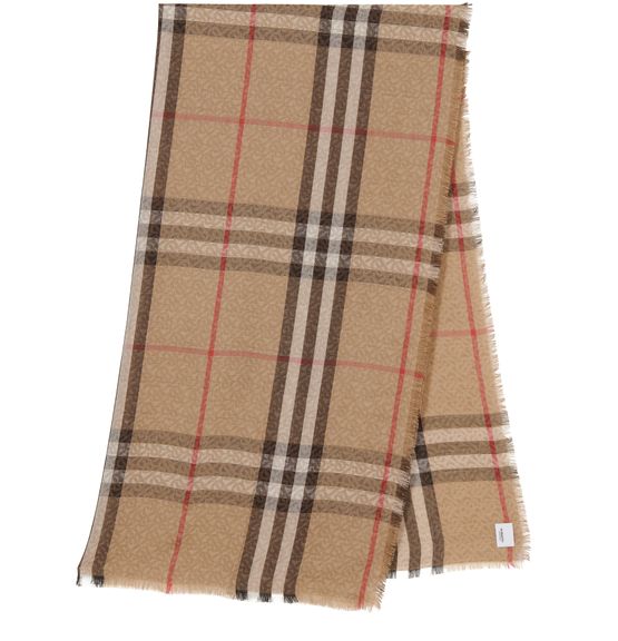 자이언트 체크(Giant Check) 스카프는 버버리(Burberry) 하우스의 두 가지 시그니처 패턴을 믹스했습니다. 영국 브랜드의 TB 모노그램 위로 빈티지 체크를 사용했습니다.