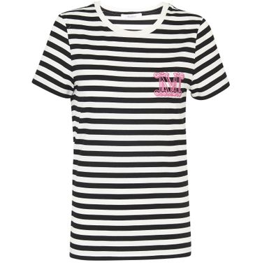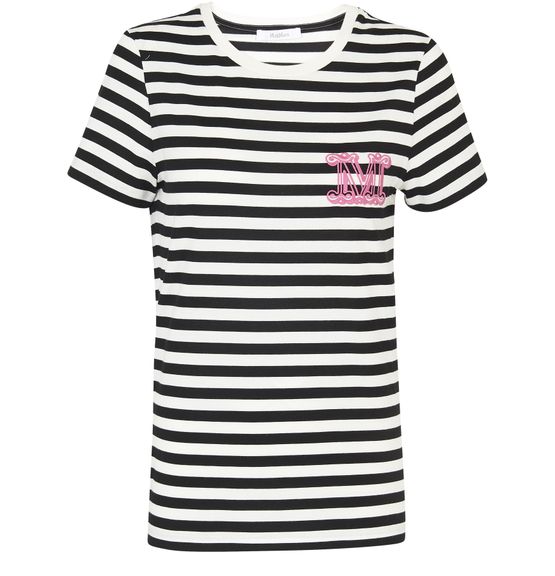 가슴에 대형 문자 로고가 새겨진 막스마라의 지니코(Ginnico) 티셔츠입니다. 스트라이프 패턴 코튼 티셔츠입니다.