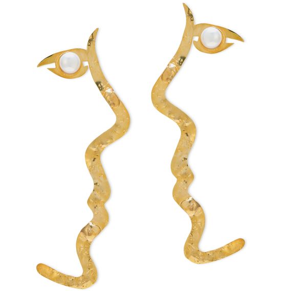 레지나 표(Rejina Pyo)와 콜라보레이션 작업을 통해 아니사 케르미슈(Anissa Kermiche)는 그랑드 떼뜨 아 떼뜨 이어링을 선보이고 있습니다. 미니 떼뜨 아 떼뜨 모델의 전 모델로 동일한 디자인 코드를 이용하고 있습니다. 인물의 옆모습을 골드 플레이티드 재질로 제작하고 여성스러운 터치를 가미하기 위해서 담수 진주를 이용했습니다. 파티에 착용하시면 메크라인에 재치와 우아함을 더해 줄 것입니다.