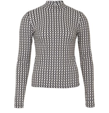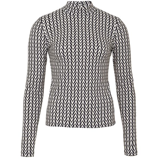 롱 슬리브 하이넥 탑은 페미닌한 실루엣을 강조합니다. 전체에 발렌티노(Valentino)의 모노그램이 더해진 독특하며 세련된 스타일의 아이템입니다.
