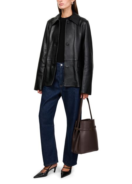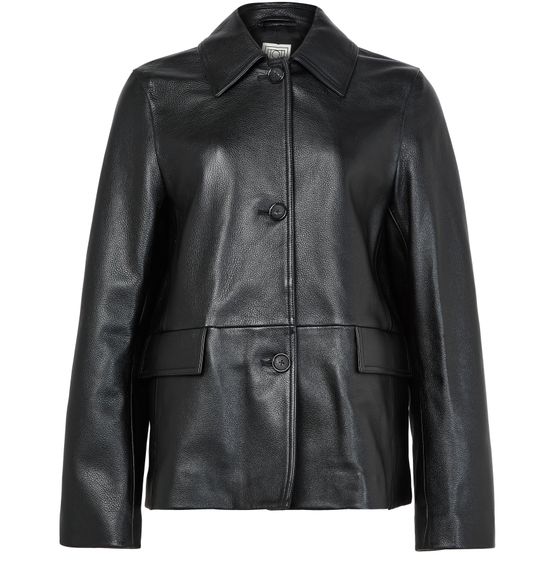 Reveal Toteme's casual jacket, a masterpiece of style and comfort. Crafted from grained leather, this regular fit jacket features a short length and button fastening with two buttons. Long-sleeved with flap pockets, it offers a versatile look for any occasion.