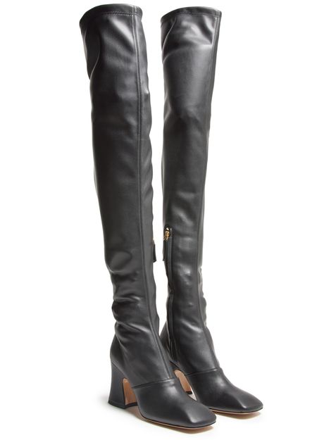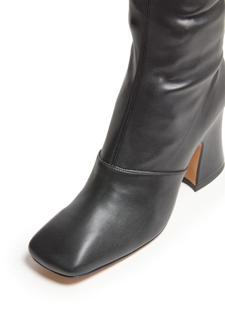 Embrace Chloe's Janis boots, crafted from smooth leather with a chic block heel. These high-heeled beauties feature a modern square toe, enhanced by visible stitching and a convenient side zipper, offering both style and functionality.